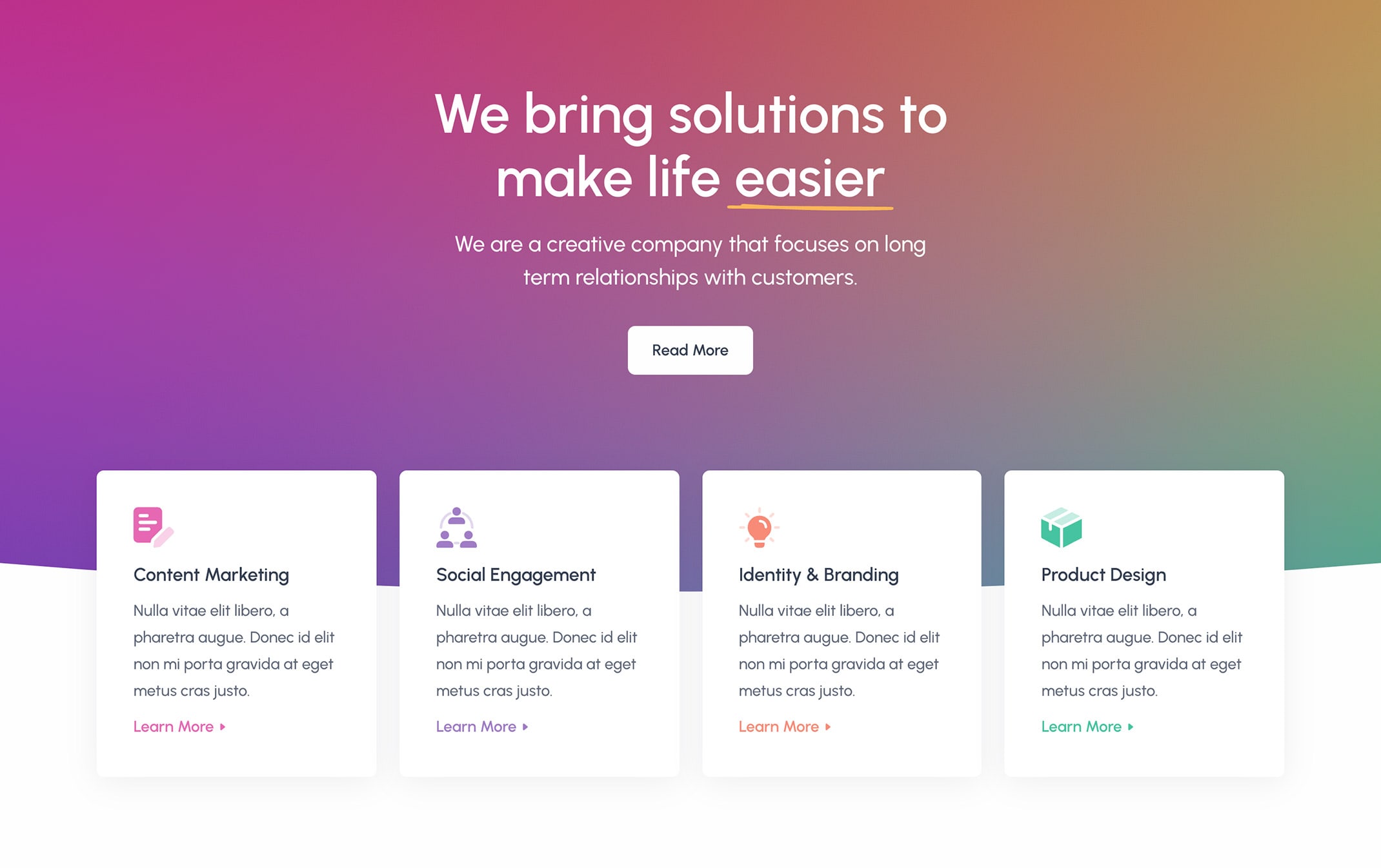 <p class="lead fs-23 lh-sm mb-7 pe-lg-5 pe-xl-5 pe-xxl-0">We are a creative company that focuses on long term relationships with customers.</p>