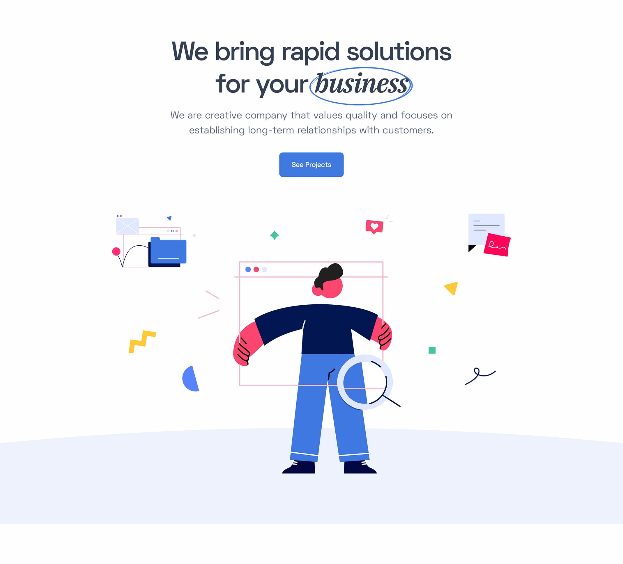 <p class="lead fs-24 lh-sm mb-7">We are creative company that values quality and focuses on establishing long-term relationships with customers.</p>